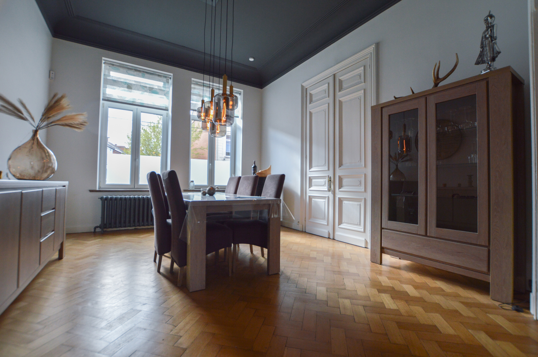 DELFIMMO, votre agence à 1%* de commission, vous propose cette magnifique maison bourgeoise dans le centre de Marcinelle ! La maison se compose comme suit, au rez-de-chaussée, vous trouverez un vaste hall d'entrée donnant sur l'espace salon-salle à manger-cuisine totalement ouvert de plus de 70m², d'un wc séparé ainsi qu'une première chambre avec salle de bains. Au premier palier, vous trouverez un second wc séparé ainsi qu'une chambre donnant accès à un nouvel espace avec possibilité de salle de bain. A l'étage, vous trouverez, un hall de nuit reprenant la seconde chambre de 20m² avec espace de bureau ou dressing de 10m², la troisième chambre de 20m² avec point d'eau et la deuxième salle de bains avec wc. Au dernier étage, vous trouverez un nouveau hall de nuit reprenant la grande chambre de 20m², un espace salon salle à manger cuisine et une salle de bain. Idéal pour colocation ou famille nombreuse. A l'extérieur, vous trouverez une belle terrasse avec jardin et une annexe pouvant être réaménage en fonction de vos besoins. La maison est équipée de châssis double vitrage en pvc, du chauffage central au gaz, de panneaux photovoltaïques, d'accumulateurs élec. et d'une ELECTRICITE CONFORME. Prix : faire offre àpd 349.000€. Infos et visites : 0476/06.76.70 ou t.pirquet@delfimmo.be. *1%HTVA soit 1,21%TVAC avec un minimum 2900€HTVA soit 3509€ TVAC